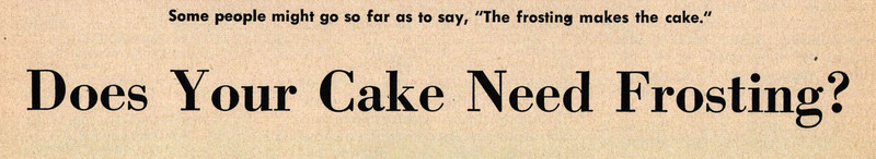 "Does your cake need frosting?  Some people might go so far as to say, 'The frosting makes the cake.'"  From The Instructor, 1956.