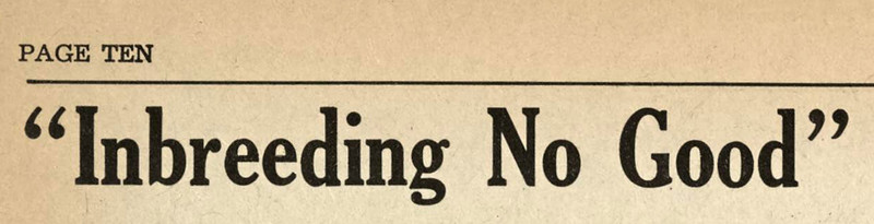 "Inbreeding no good."  From The Gateway, 1960.