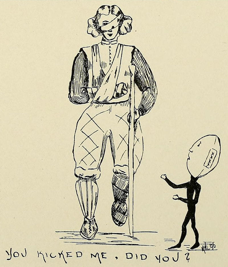 #vintage illustration #anthropomorphism #vintage yearbook #yearbook #1890s #illustration #football #injured