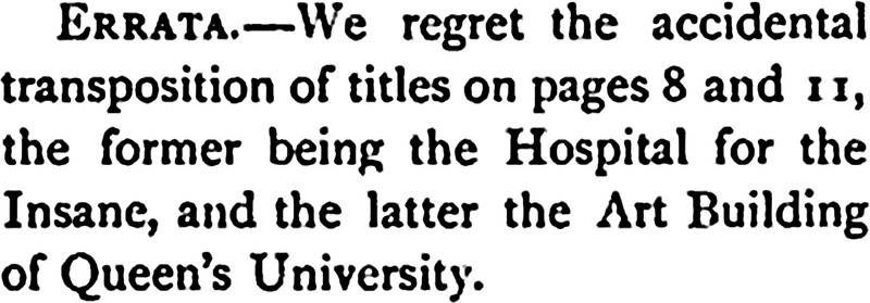 It's an easy sort of error, mistaking a hospital for the insane with a university's art department. From Canadian Horticulture and Home Magazine, 1897.