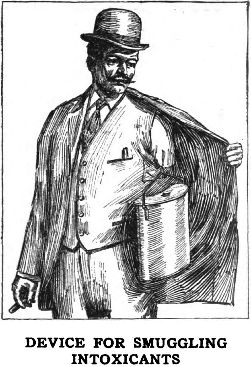 "Device for smuggling intoxicants."  From Popular Mechanics, 1909.