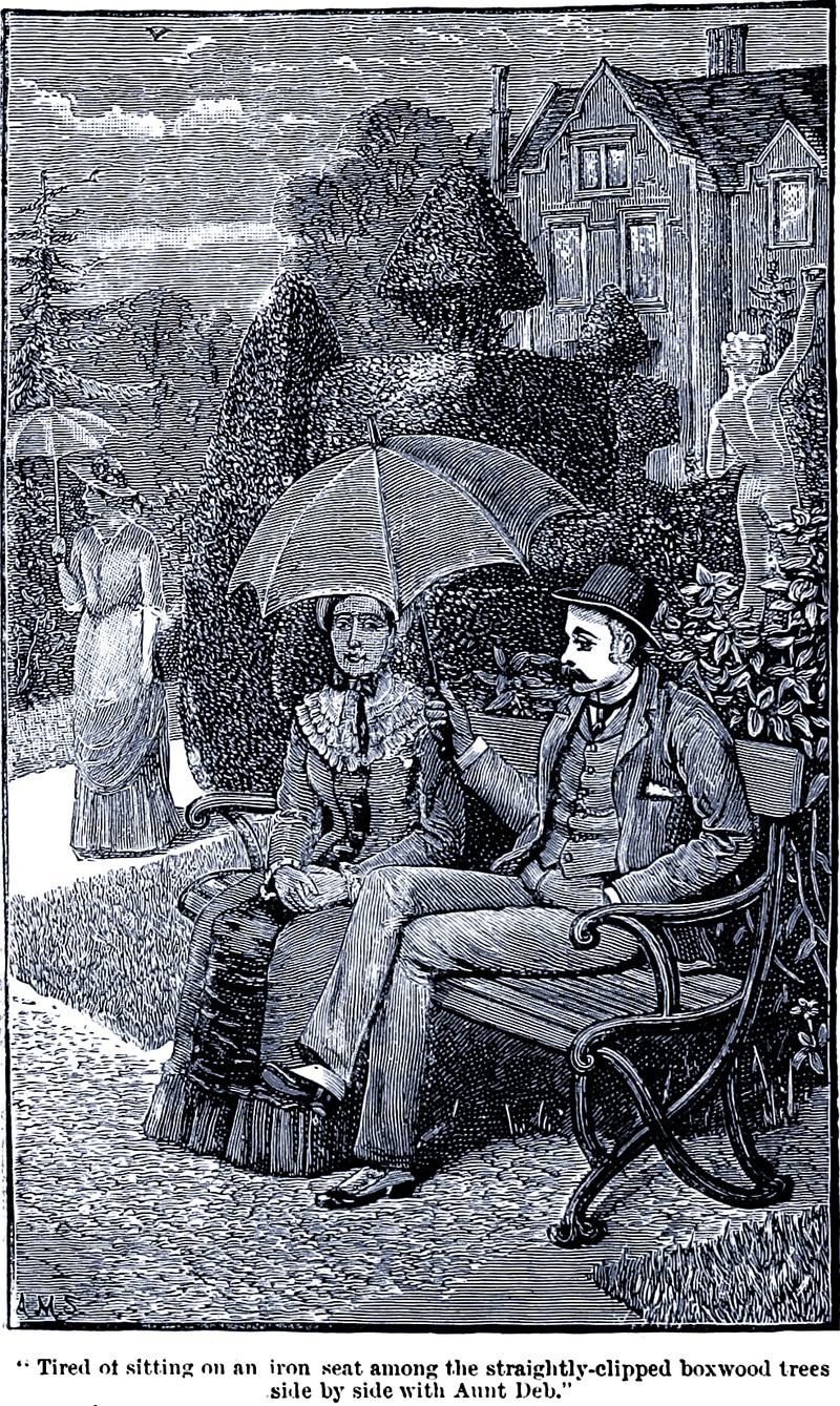 What's the word for being "Tired of sitting on an iron seat among the straightly-clipped boxwood trees side by side with Aunt Deb"? From Silverton Court by Winifred Taylor, 1885.
