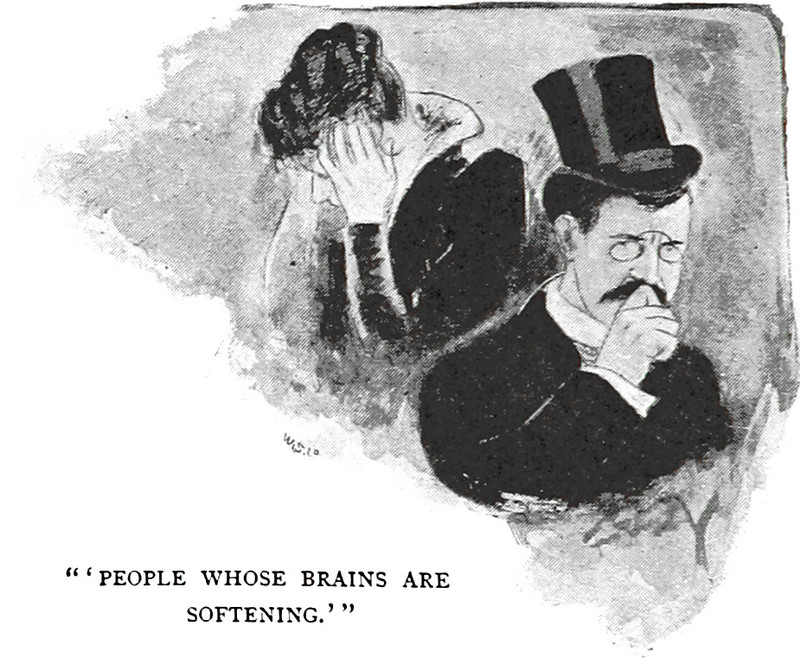 An illustration from The King of Schnorrers by Israel Zangwill (1894).  The caption reads: "People whose brains are softening."