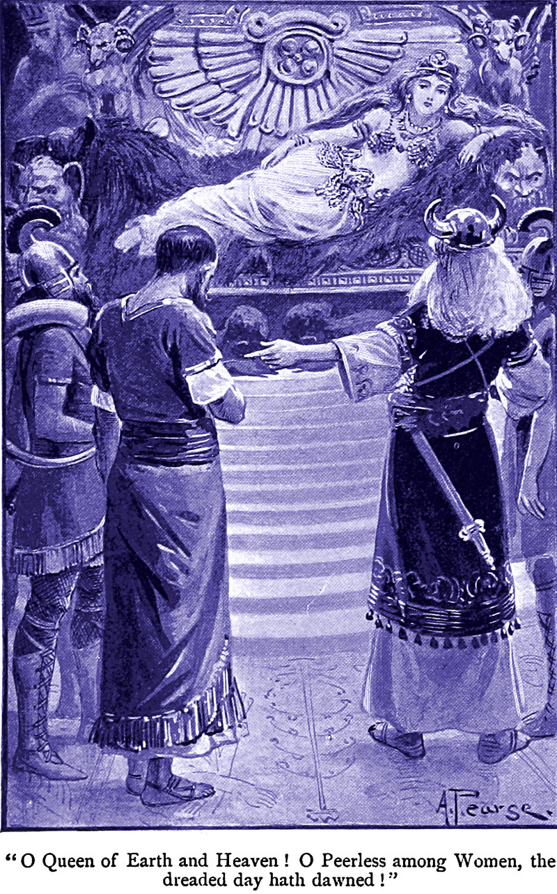 "O Queen of Earth and Heaven!  O Peerless among Women, the dreaded day hath dawned!"  From The Eye of Istar by William Le Queux, 1897.