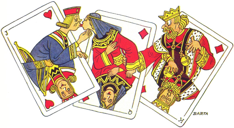#vintage illustration #playing cards #illustration #queen of diamonds #jack of hearts
