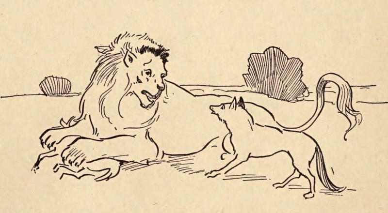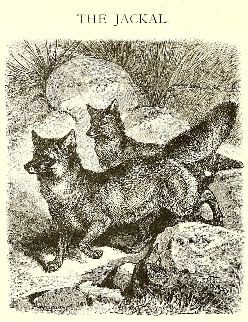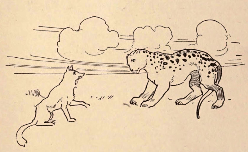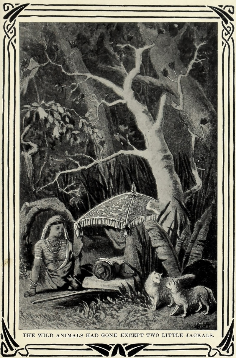"The wild animals had gone except two little jackals." From Myths From Many Lands by Eva March Tappan, 1907.