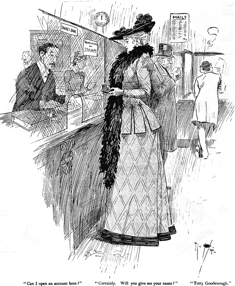 Before the James Bond character Pussy Galore, there was Totty Goodenough.  From Pick Me Up, 1892.