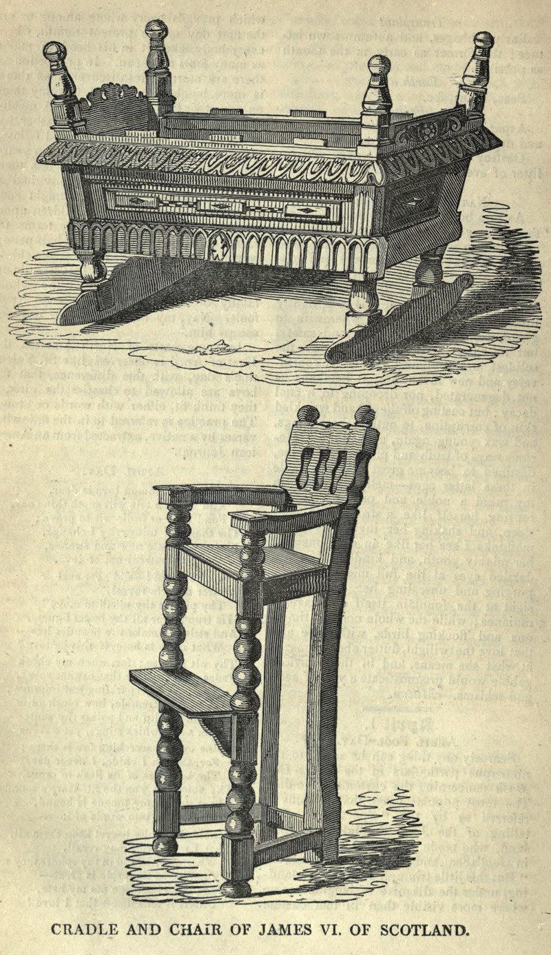 #vintage illustration #chair #illustration #cradle #highchair #1840s #james vi