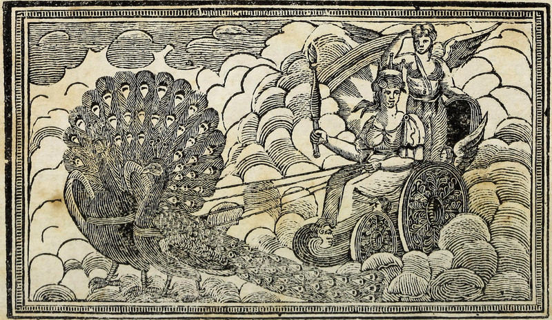 Juno, from History of the Heathen Gods and Heroes of Antiquity by William Sheldon, 1816.