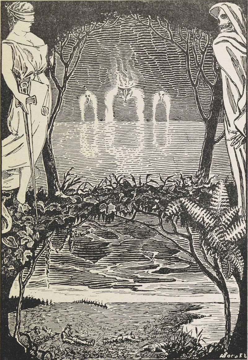 #vintage illustration #death #blindfold #grim reaper #1900s #justice