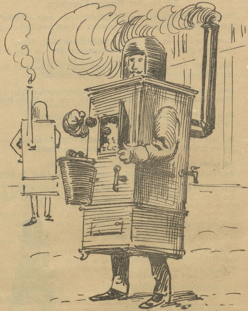 #vintage illustration #winter #armor #stove #keeping warm #body heat