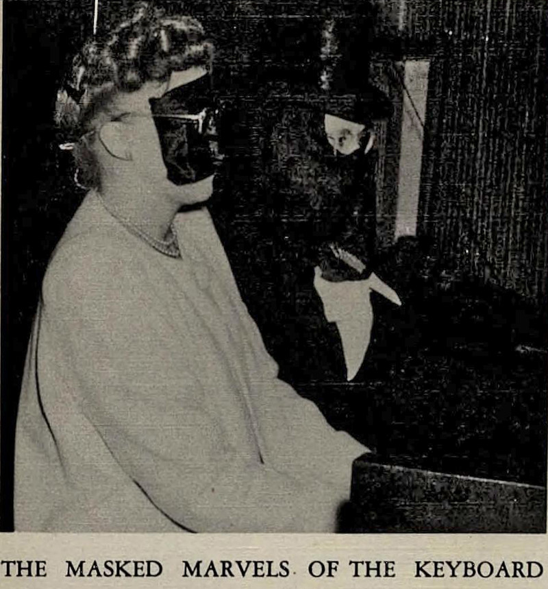 Here's a precursor to Daft Punk, Deadmau5, and the many DJs who wear masks in concert. "The masked marvels of the keyboard," from Anderson's 1948 yearbook.