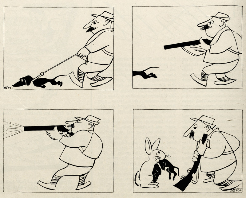 Here's a precursor to the Killer Rabbit of Caerbannog in Monty Python and the Holy Grail.  From Nebelspalter, 1937.
