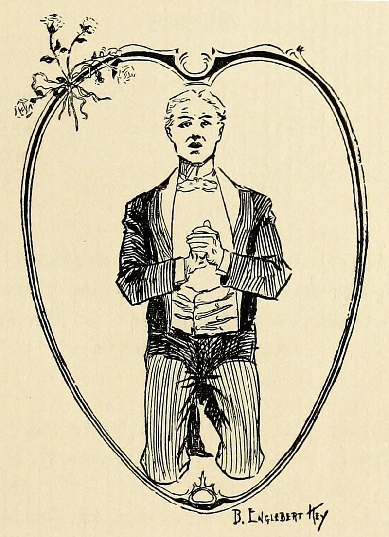 An illustration from The Mystery of June 13th by Melvin Linwood Severy (1905). The caption reads: "Down on thy knees and speak the truth before I blast thee!"