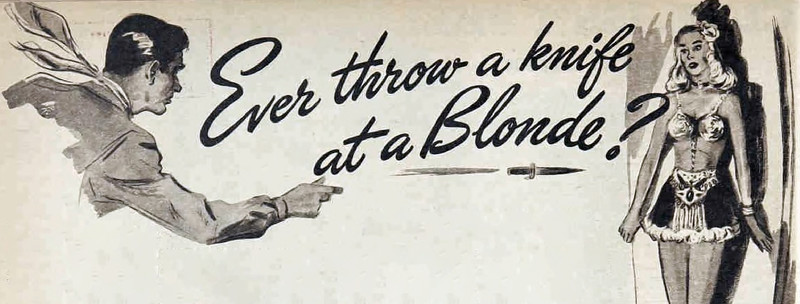 "Ever throw a knife at a blonde?"  From The Australian Women's Weekly, 1947.