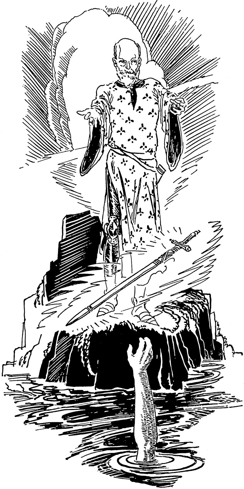 #vintage illustration #sword #excalibur #king arthur #lady of the lake #1920s #illustration