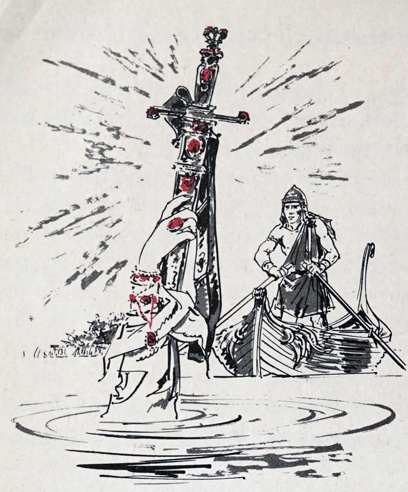 #vintage illustration #sword #excalibur #king arthur #lady of the lake #1960s #illustration