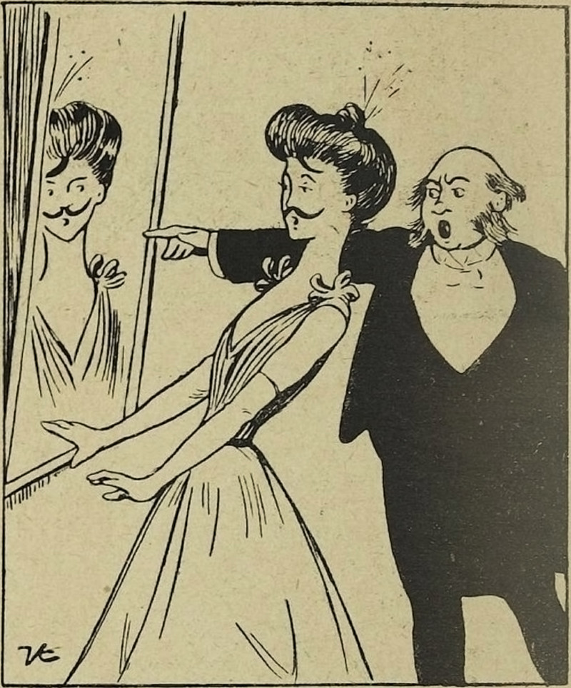 #vintage illustration #transgender #man in the mirror #facial hair #mustache #lady shave #female mustache