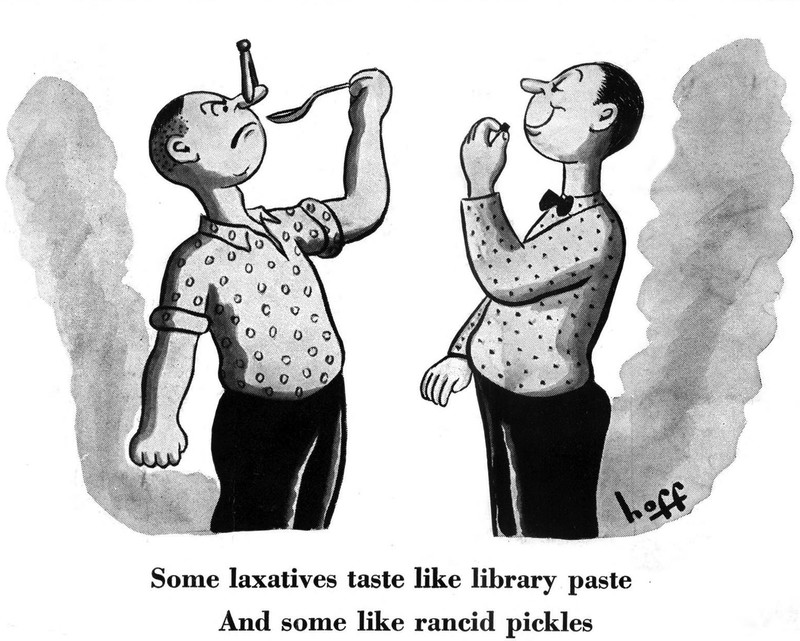 "Some laxatives taste like library paste and some like rancid pickles."  From Adventure magazine, 1935.