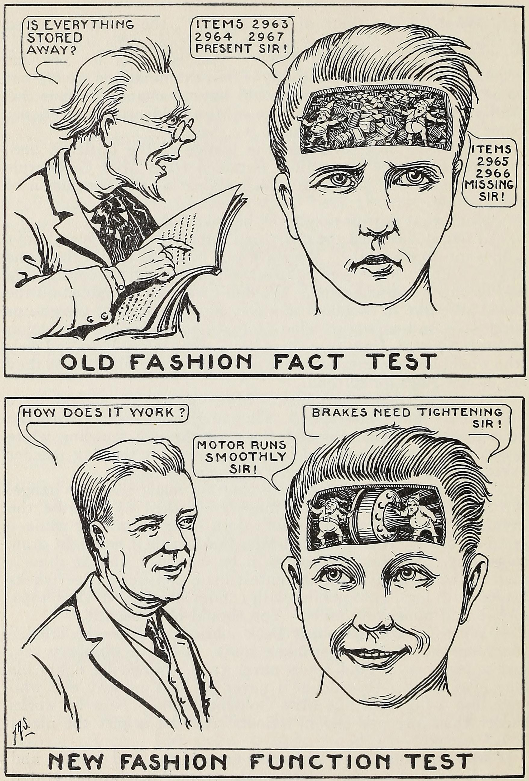 These headlines about "pupil-centered teaching" "to help them teach themselves" (from The Instructor, 1961 and 1957) recall the hilarious People Like Us (1999), episode 6.