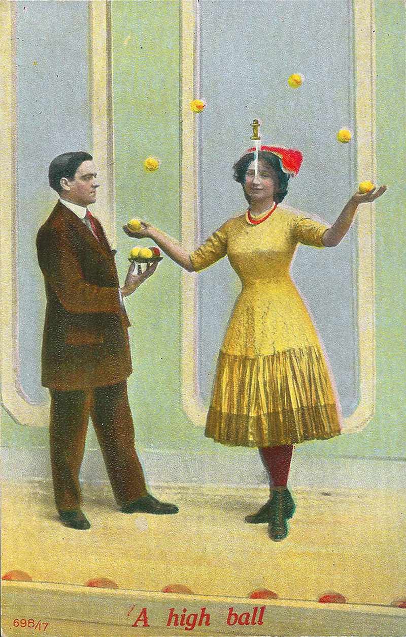 #juggling #vintage postcard #lemons #dagger #postcard