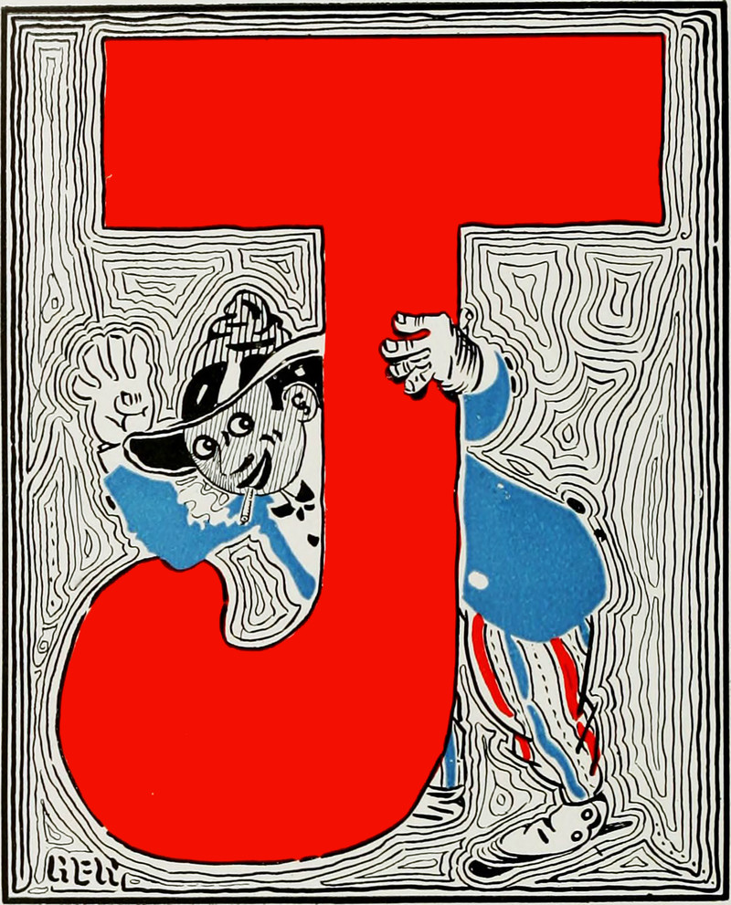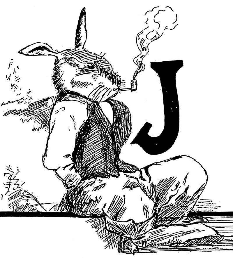 #vintage illustration #ornate capital #anthropomorphism #vintage yearbook #rabbit #yearbook #pipe smoker #letter j