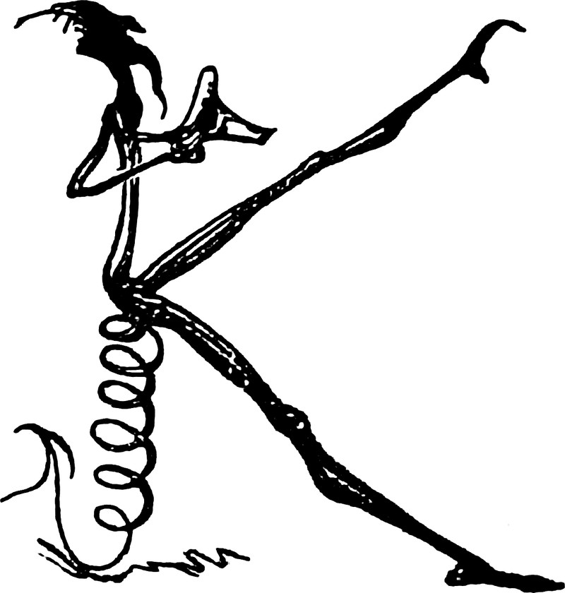#vintage illustration #devil #ornate capital #capital k #letter k #illustration