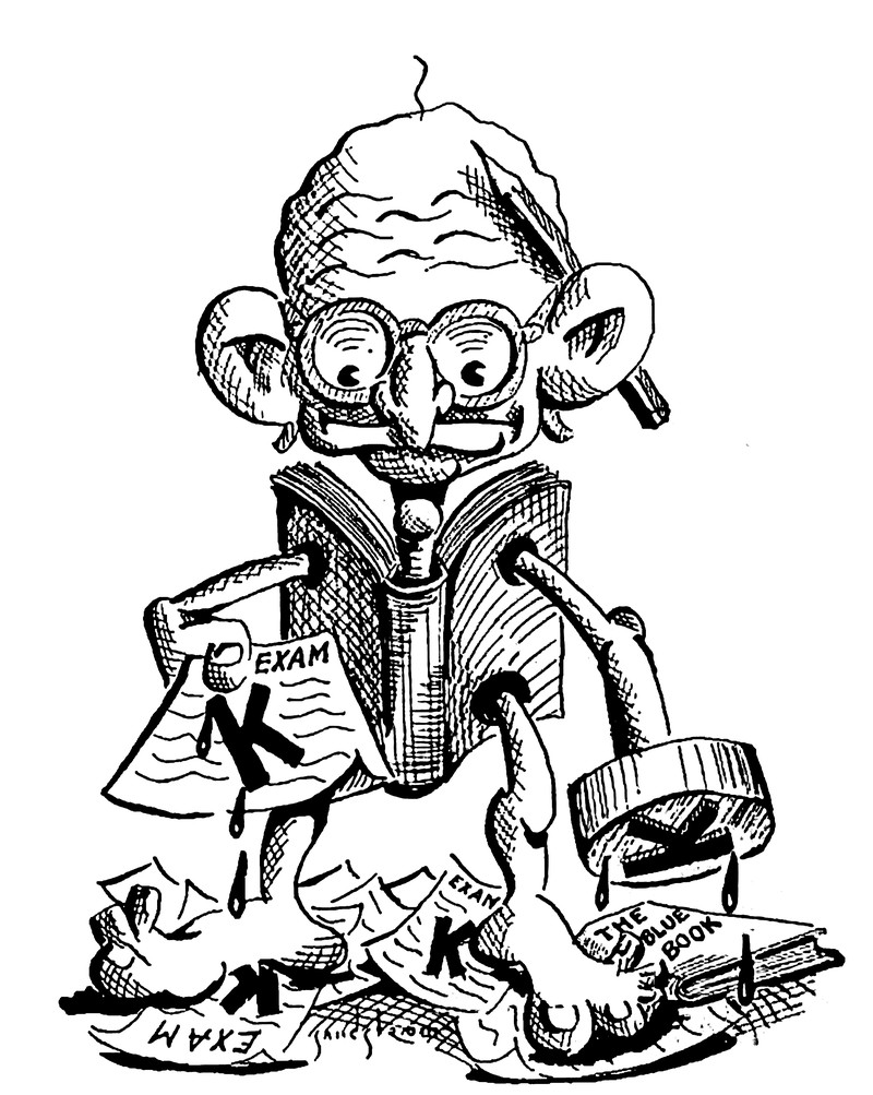A humanoid book that stamps the letter K onto exams.  From Washington State University's 1947 yearbook.