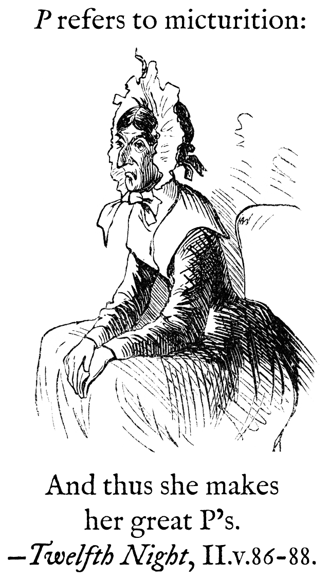 "Charlie ... gestured with his head to the letter." — S. L. Richardson, All The Way (2008) The illustration of the giant letter P is from Punch, 1857.