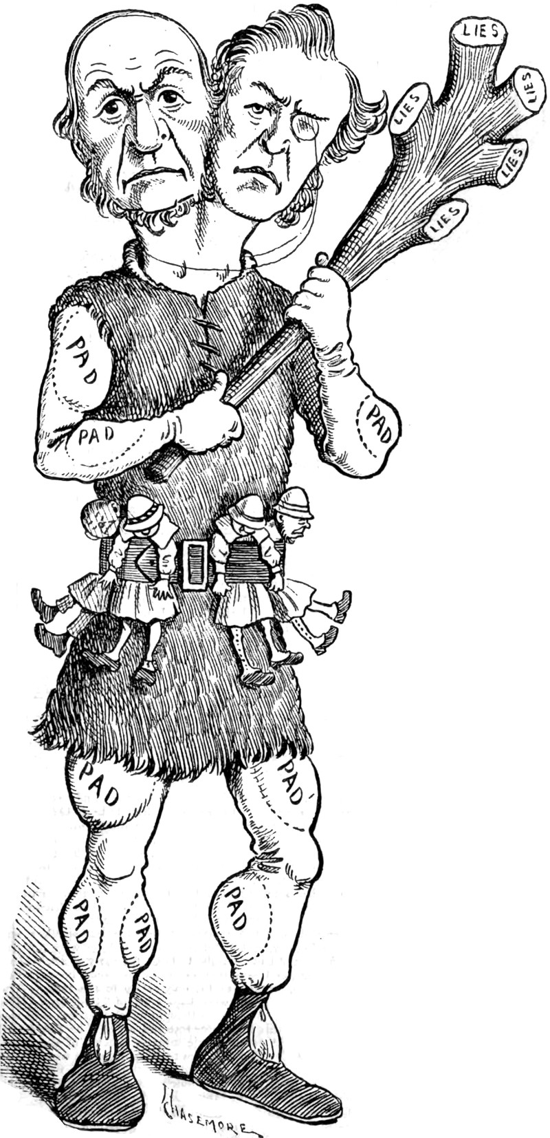 #vintage illustration #mythology #giant #liar #two headed #two faced #illustration