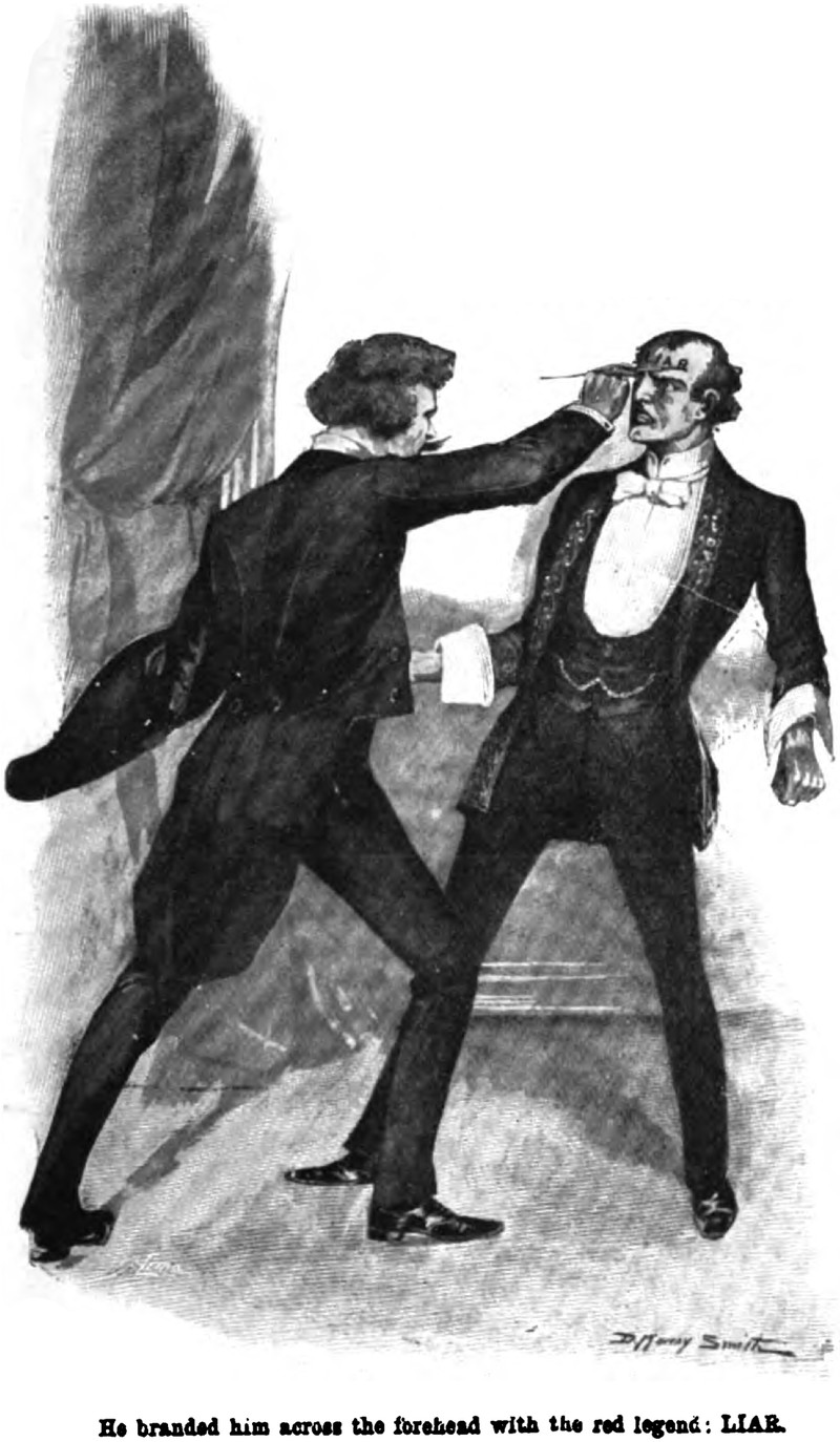 "He branded him across the forehead with the red legend: LIAR."  From Pearson's, 1898.