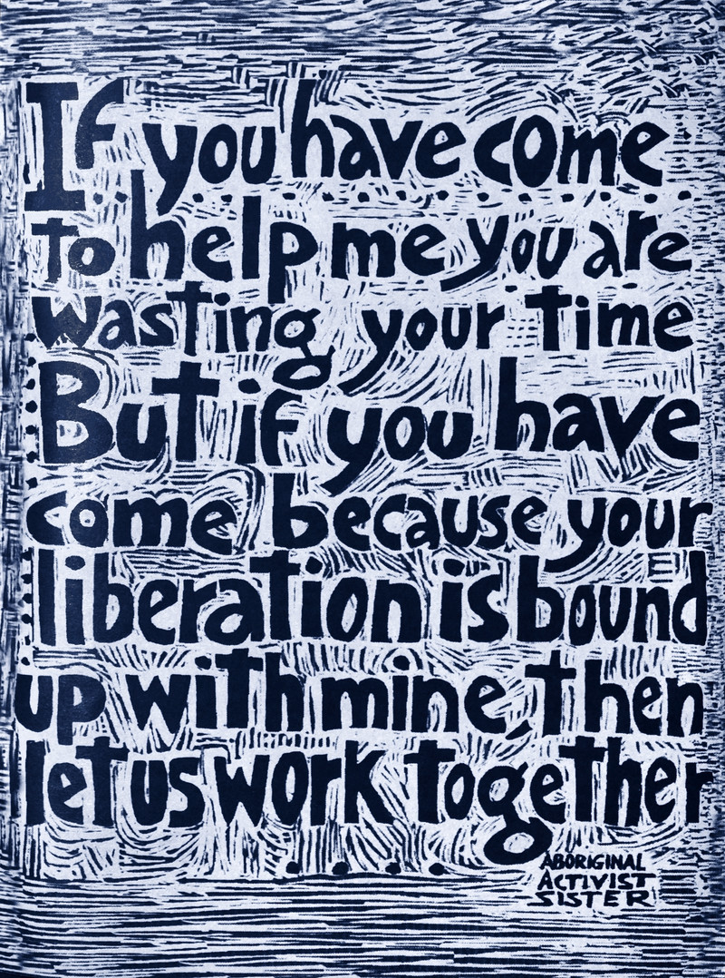 "If you have come to help me you are wasting your time.  But if you have come because your liberation is bound up with mine, then let us work together."  From Earth First! 2002.
