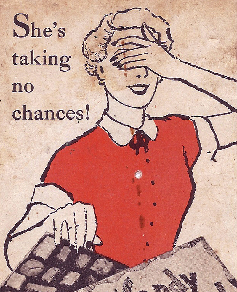 "She's taking no chances" -- a detail from an ad for confections.