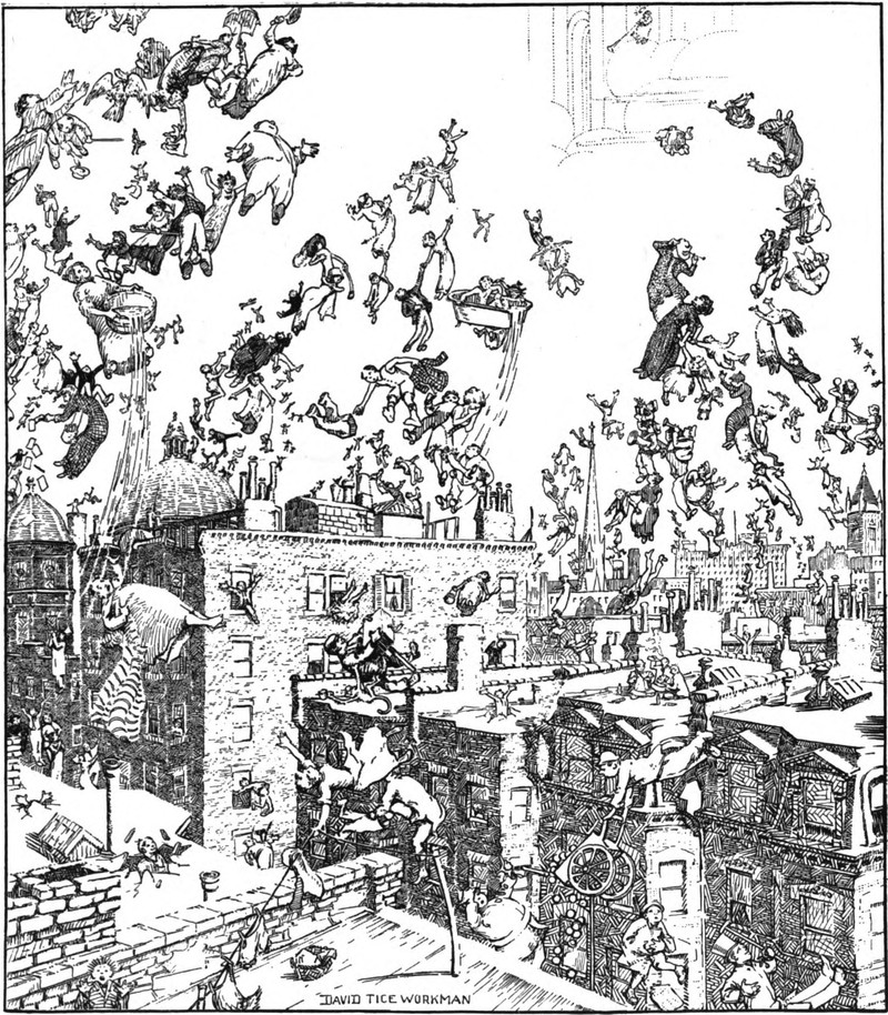#vintage illustration #weightless #the people could fly #rapture #gabriel's horn #lifted up