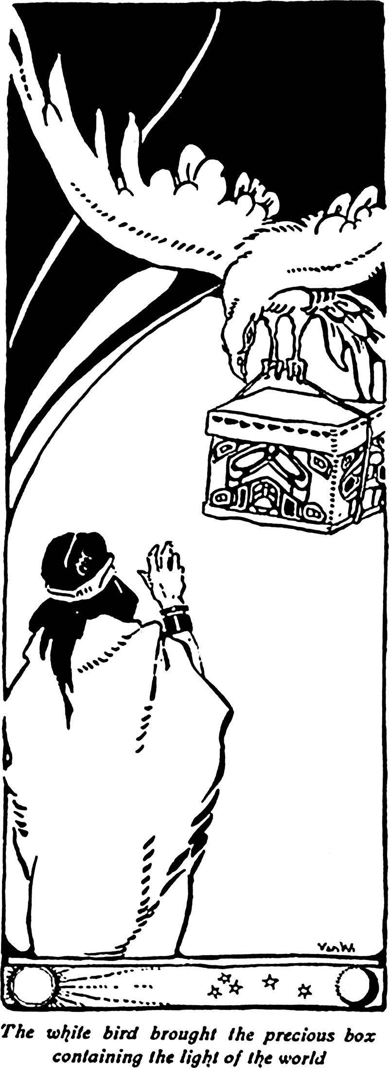 "The white bird brought the precious box containing the light of the world."  From Everygirl's Magazine, 1922.