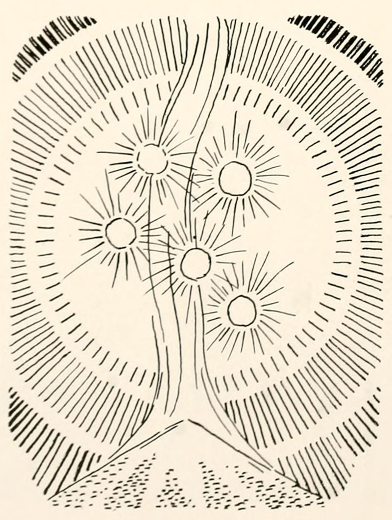 #vintage illustration #vintage yearbook #volcano #yearbook #lights in the sky #1940s #illustration #many suns #multiple suns