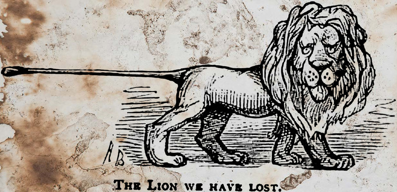 "The lion we have lost."  From Judy, Or The London Serio-Comic Journal, 1882.