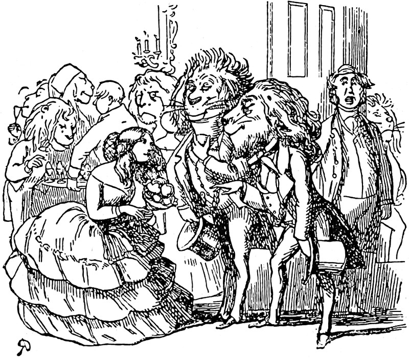 #vintage illustration #anthropomorphism #lion-headed #animal heads #thackeray #illustration