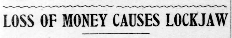"Loss of money causes lockjaw."  From The Duluth Evening Herald, 1905.