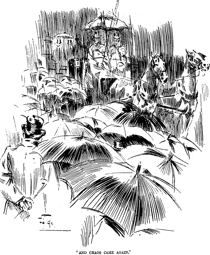 #vintage illustration #chaos #umbrellas #vintage london #london england #illustration
