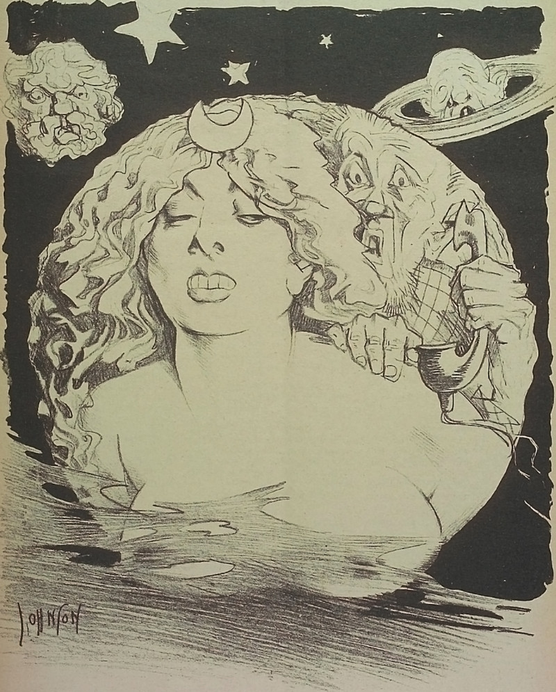 Here's a precursor to the song "The Man in the Moon (is a Lady)," in the musical Mame (1966). From Astronomy for Amateurs by Camille Flammarion, 1904. See our previous proof that the craters of the moon line up exactly with the Mona Lisa's facial features.