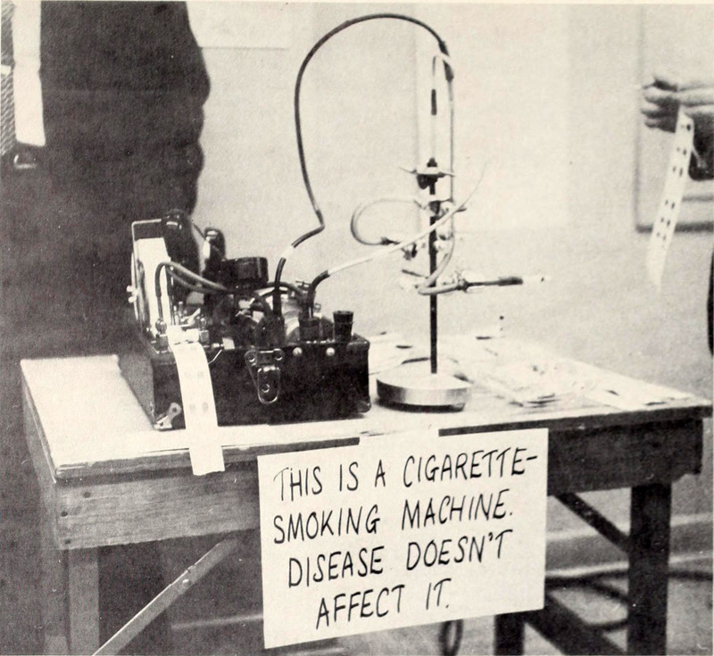 "This is a cigarette smoking machine.  Disease doesn't affect it."  From Queen's University's 1962 yearbook.
