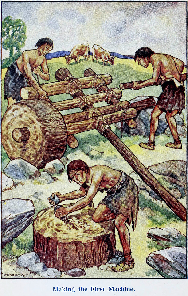 #vintage illustration #invention #caveman #illustration #prehistoric #machine