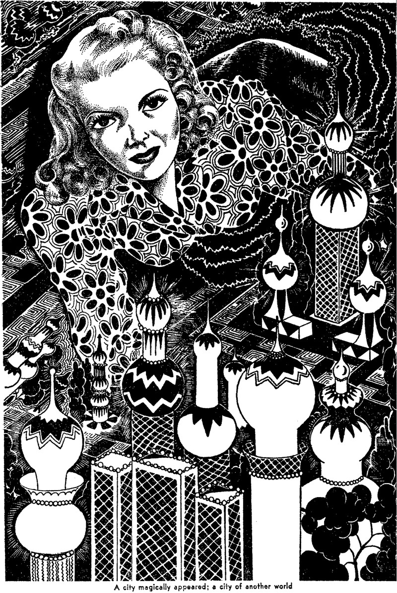 "A city magically appeared; a city of another world."  From Amazing Stories, 1943.