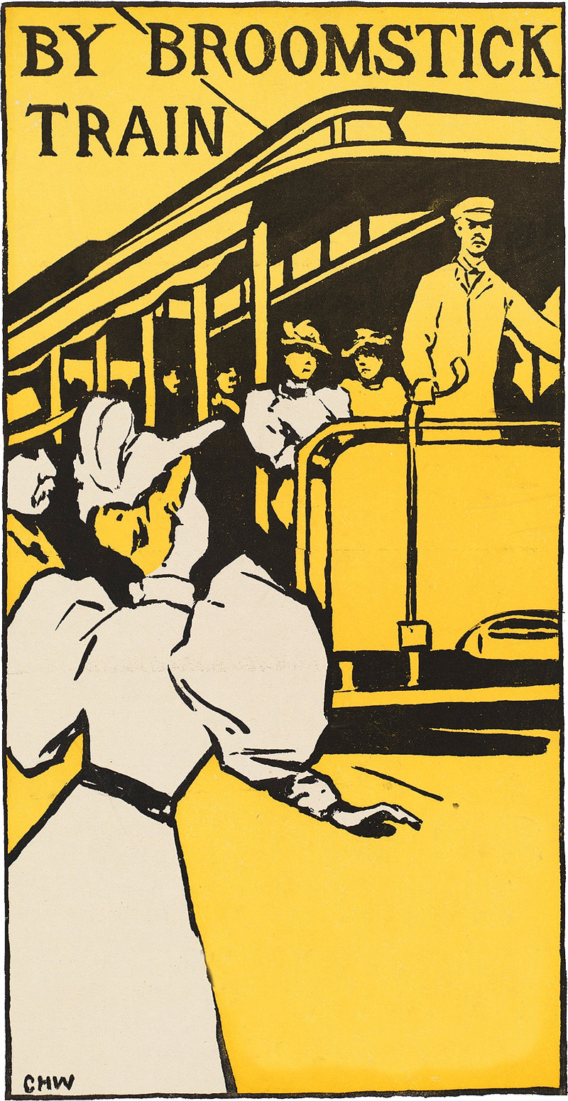 Here's a precursor to Harry Potter — a travel guide to Boston entitled By Broomstick Train, illustrated by Charles H. Woodbury, c. 1895.