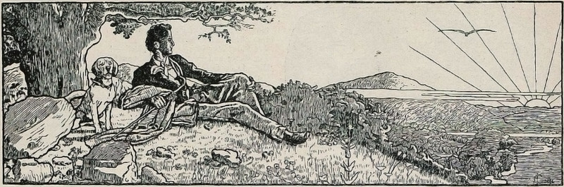 #vintage illustration #sunrise #dog #illustration #man's best friend #view #man