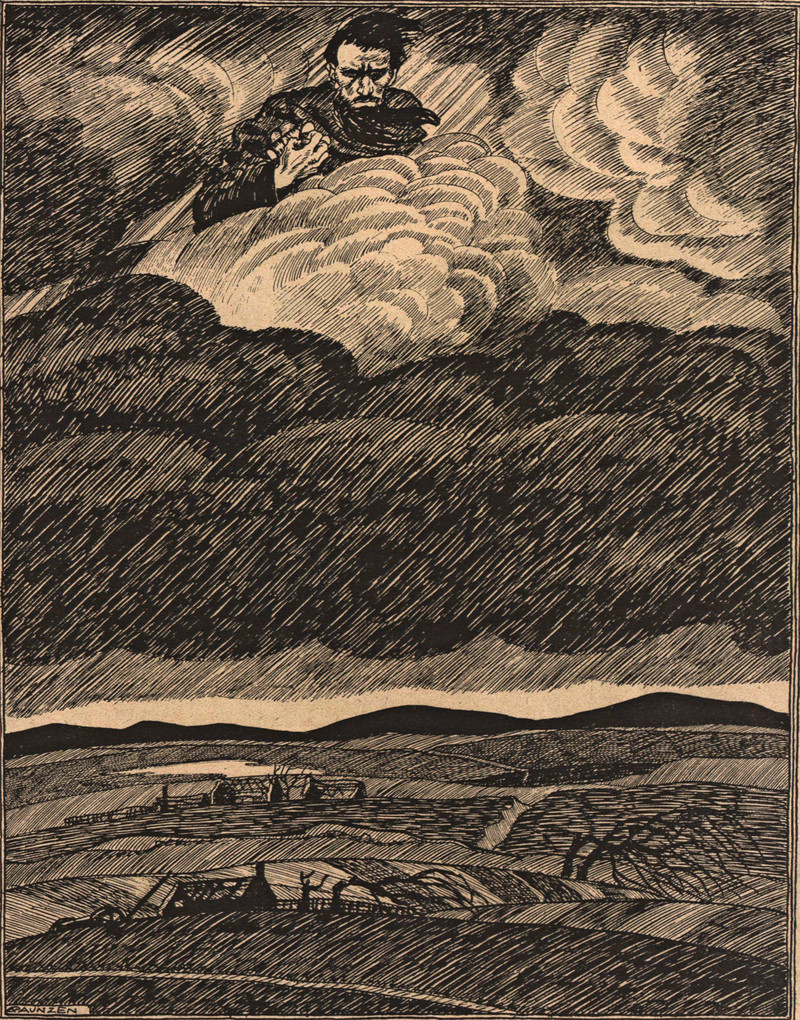 #vintage illustration #clouds #storm #illustration #sky man #man in the clouds #man in the sky #man of storms