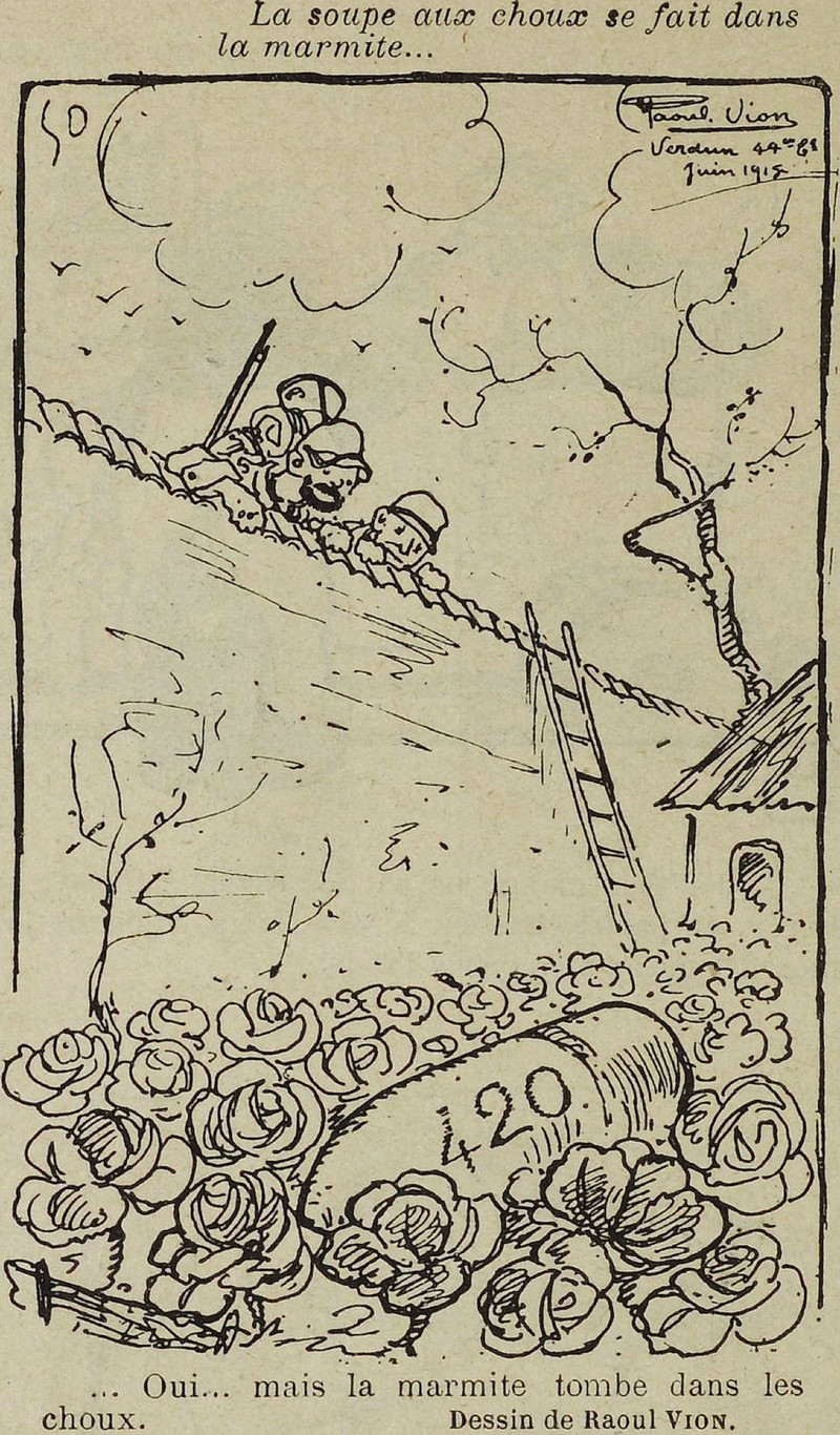 Here's a precursor to "420" as marijuana slang, fully 56 years earlier than its supposed origin in 1971. The text reads, "Cabbage soup is made in a lidded pot. Yes, but the lidded pot falls into the cabbage." "Lid," "pot," "cabbage," and "420" are all euphemisms for cannabis. From 1915, printed in an issue of Le Rire the following year.