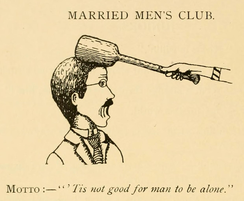 #vintage illustration #vintage yearbook #marriage #wedlock #hit on the head #head wound #married