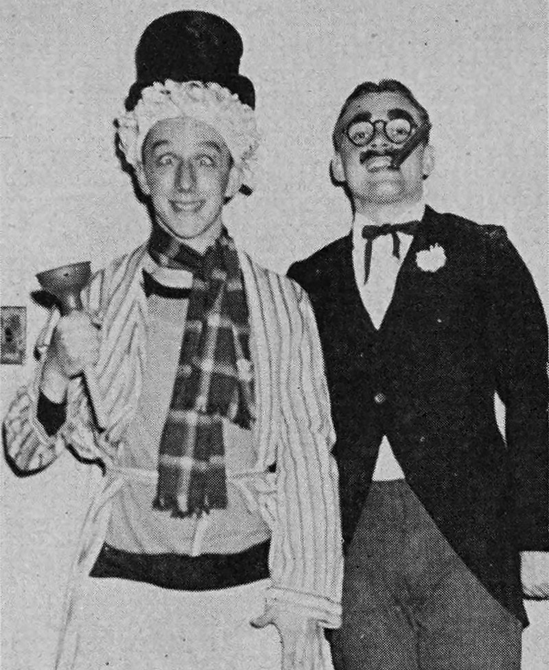 The most Groucho glasses we've encountered in a single yearbook photo is 8. Meanwhile, here are two students whose official portraits are as Harpo and Groucho. From Washington and Lee's 1977 yearbook.